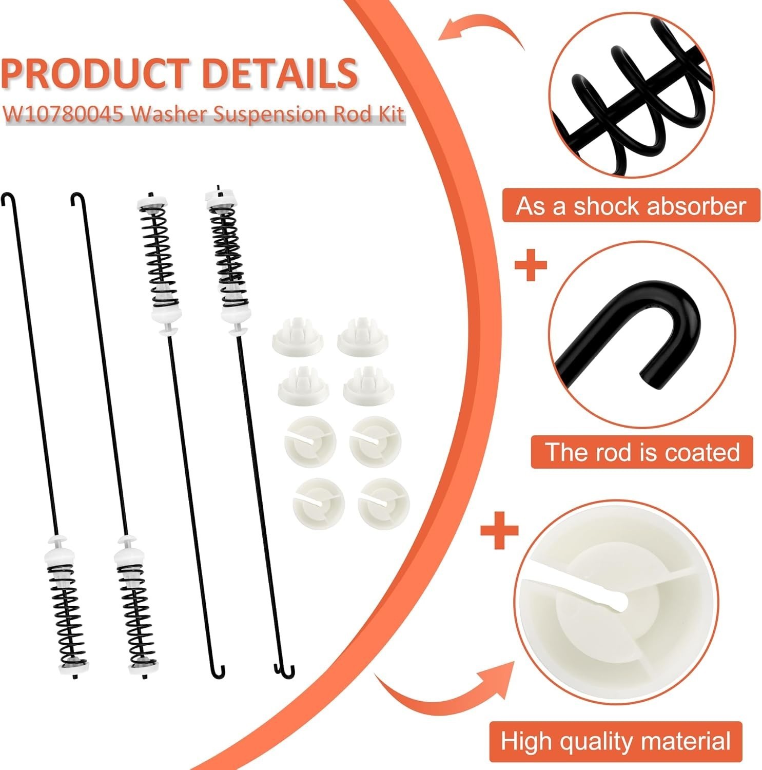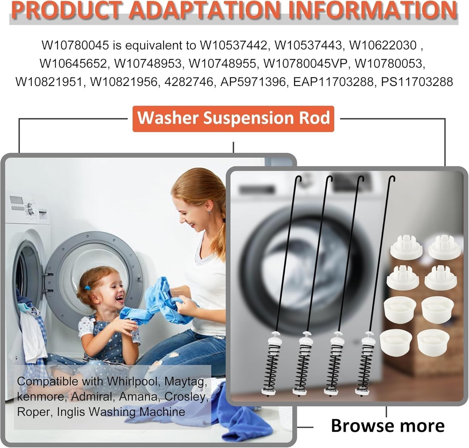 Updated W10780045 Washer Suspension Rod Kit 4pcs by Funmit