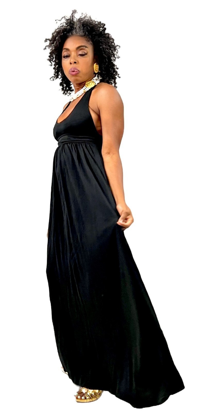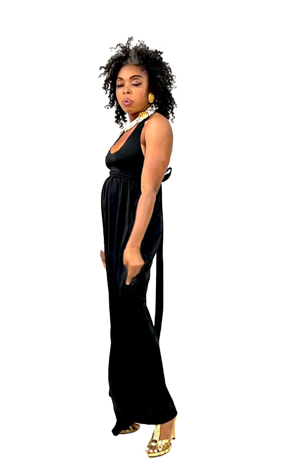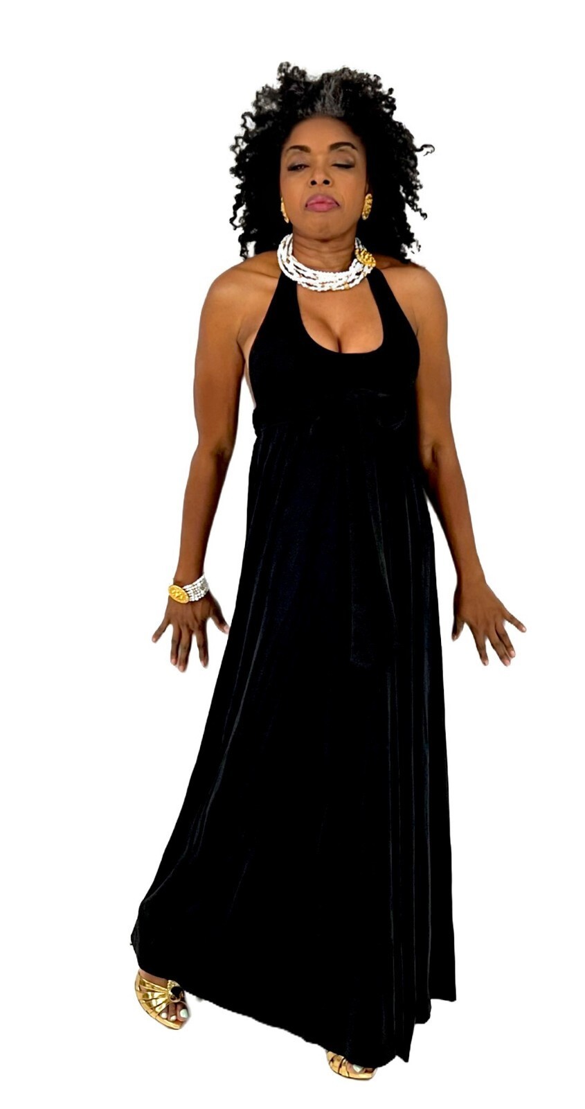 GEORGE’S FACTORY CA 70's Vtg Sexy Halter Backless Empire Waist Maxi Dress S Poly