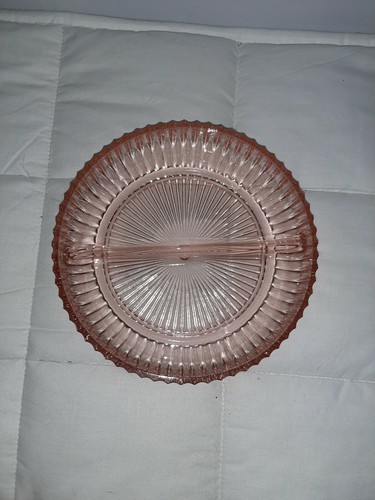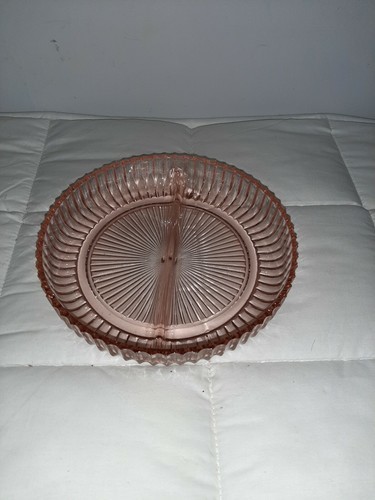 Vintage Pink Depression Glass Relish Dish Divided 7" diameter
