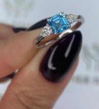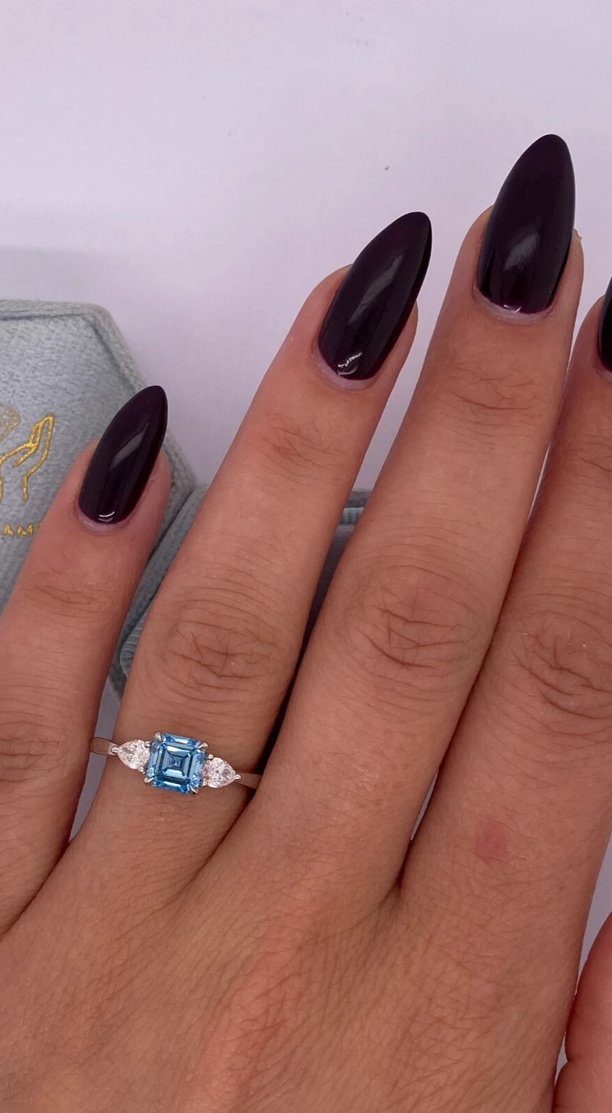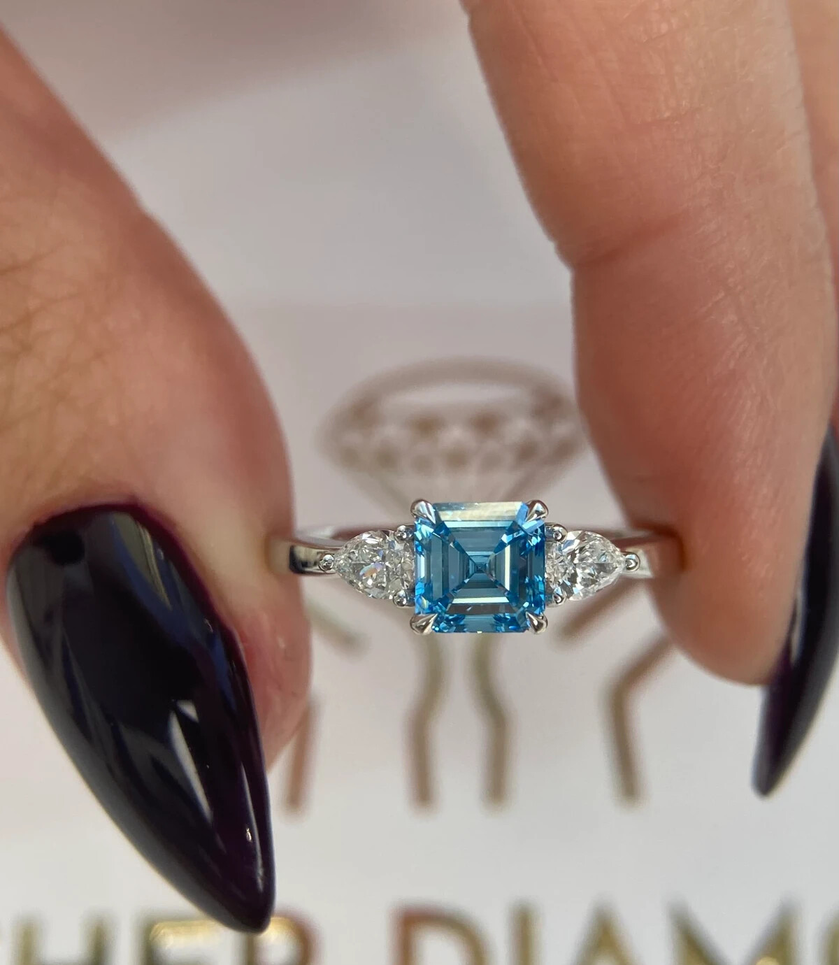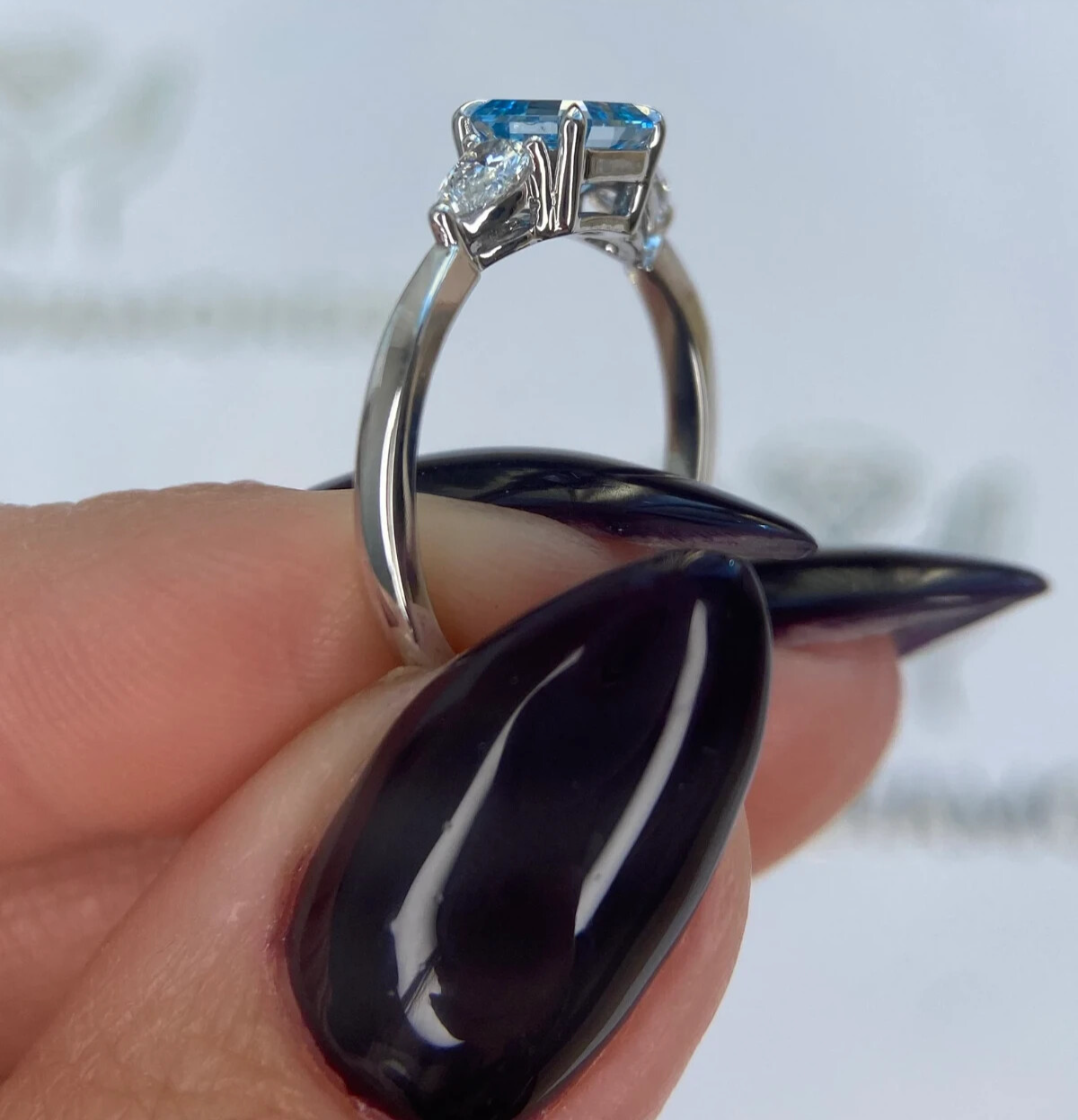 1.30 Ct Fancy Vivid Blue Color IGI Certified Asscher Cut Lab Grown Diamond Ring