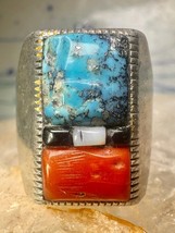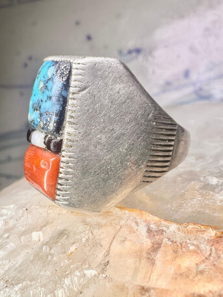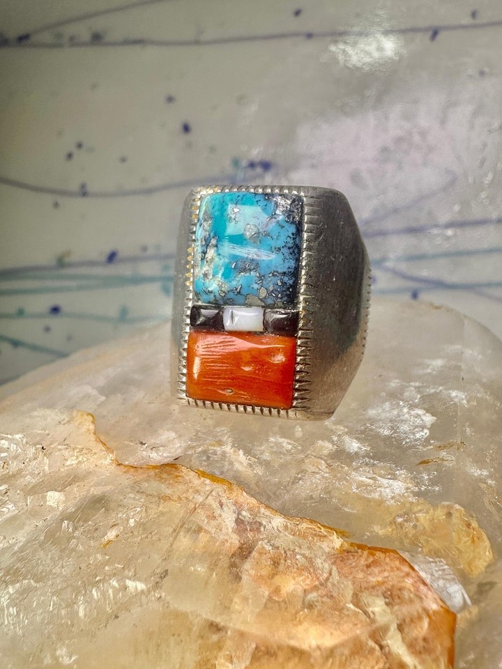 Navajo ring cobblestone turquoise coral MOP onyx size 10 sterling silver men women