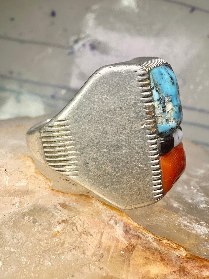 Navajo ring cobblestone turquoise coral MOP onyx size 10 sterling silver men wom
