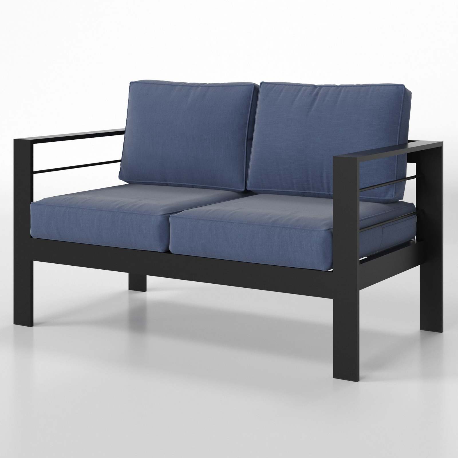 All-Weather Aluminum Outdoor Loveseat Sofa with Thick Blue Cushion