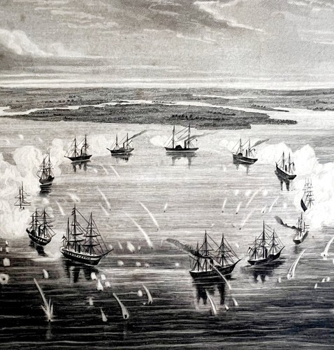 Civil War Engraving Port Royal Naval Battle and 50 similar items