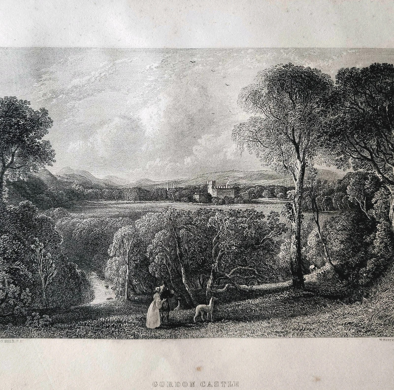 1844 Gordon Castle Engraving Victorian Scotland Greyhound Dogs Couple DWSS18