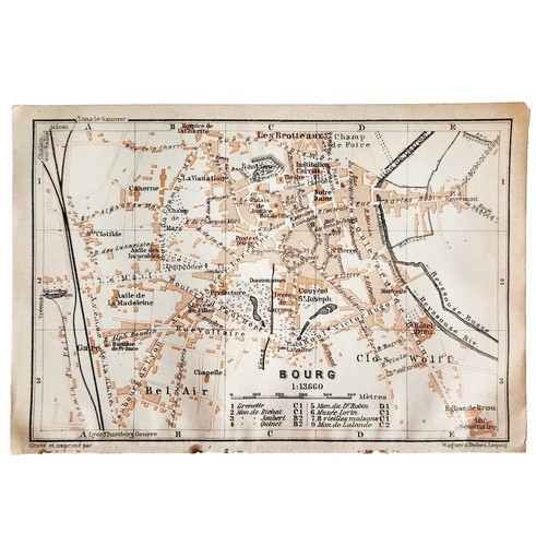 Map Bourg Southern France Rare 1914 Lithograph WW1 Street Mini Sheet DWAA20B