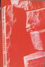 Notes: Text in Brazilian Portuguese and English. Art exhibition pamphlet, stapled binding, light creasing and soiling to covers. 28 pages, illustrated in black and white and color. From the pamphlet: "One of the high points of the show of "10 years of Work of Maria Bonomi", at the museum of Modern Art, is the collection of lithographs, put together in the form of an album, which the artist has entitle "The Ballad of Terror and 8 Variations". They represent her most recent work and wer all produced in 1971. Maria worked on stones under the technical direction of Otavio Pereira, who has recently left the printing department of Gemini in Los Angeles - one of the two or three biggest Ateliers in America for engraving..."