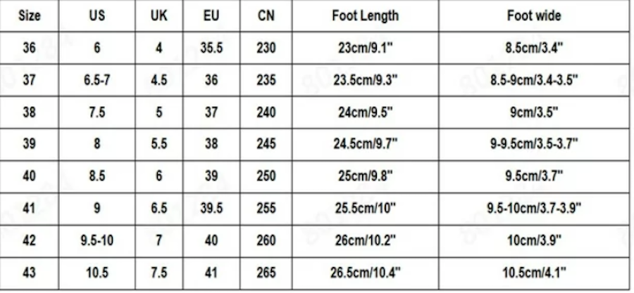 | US Shoe Sizes: |