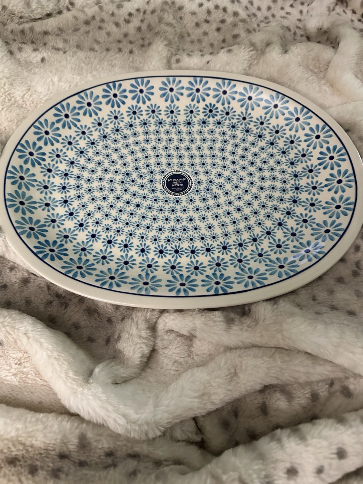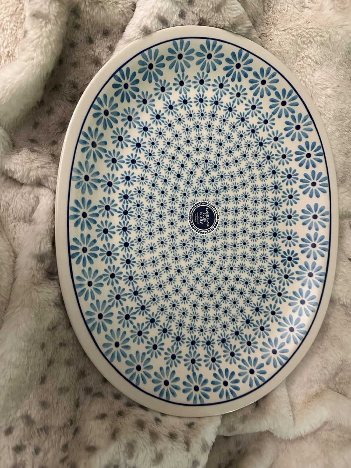 Boleslawiec Polish Pottery Baking Oval Platter Navy\Blue 13.5” x 10.5” BNWT NICE