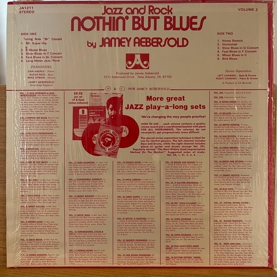 Most of the volumes in Aebersold's Play-A-Long series feature a selection of ten to twelve jazz standards, though some focus on scales, standardized chord progressions (like the blues), or original compositions by Aebersold's collaborators. The recordings feature a professional rhythm section (typically piano, bass, and drums, occasionally including guitar) performing an improvised accompaniment to each song. Melody instruments like saxophone and trumpet are omitted, enabling a jazz student to practice the song's melody and improvise over the chord changes with accompaniment. Piano and bass tracks are panned to opposite channels so that a pianist or bassist can easily omit the recorded piano or bass part by muting the appropriate channel.