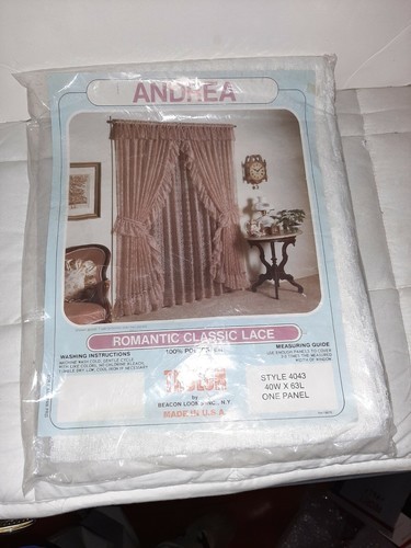 Vintage White Lace Curtain Panel 63L x 40W Floral Andrea by Trulon. 100% polyester.