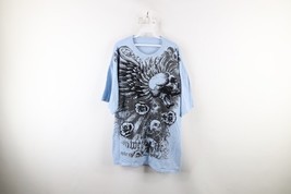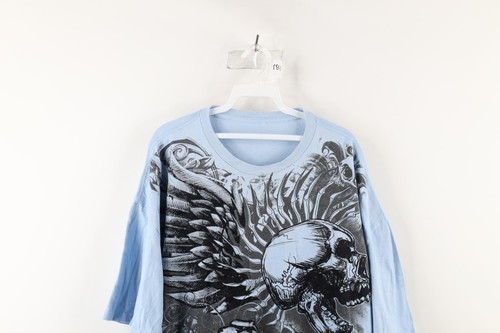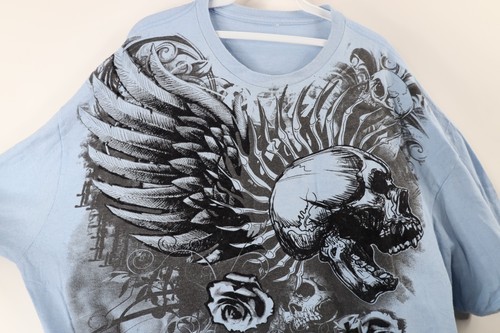 Vintage Streetwear Mens 3XL Faded Cross Rose Skull MMA Fighting T-Shirt Blue