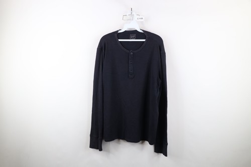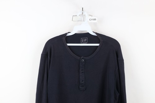 Vintage Gap Mens Large Sun Faded Thermal Waffle Knit Long Sleeve Henley T-Shirt