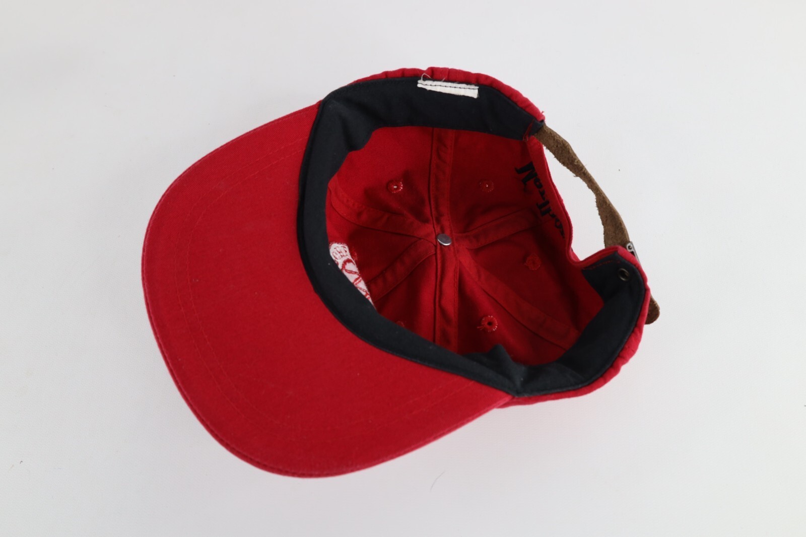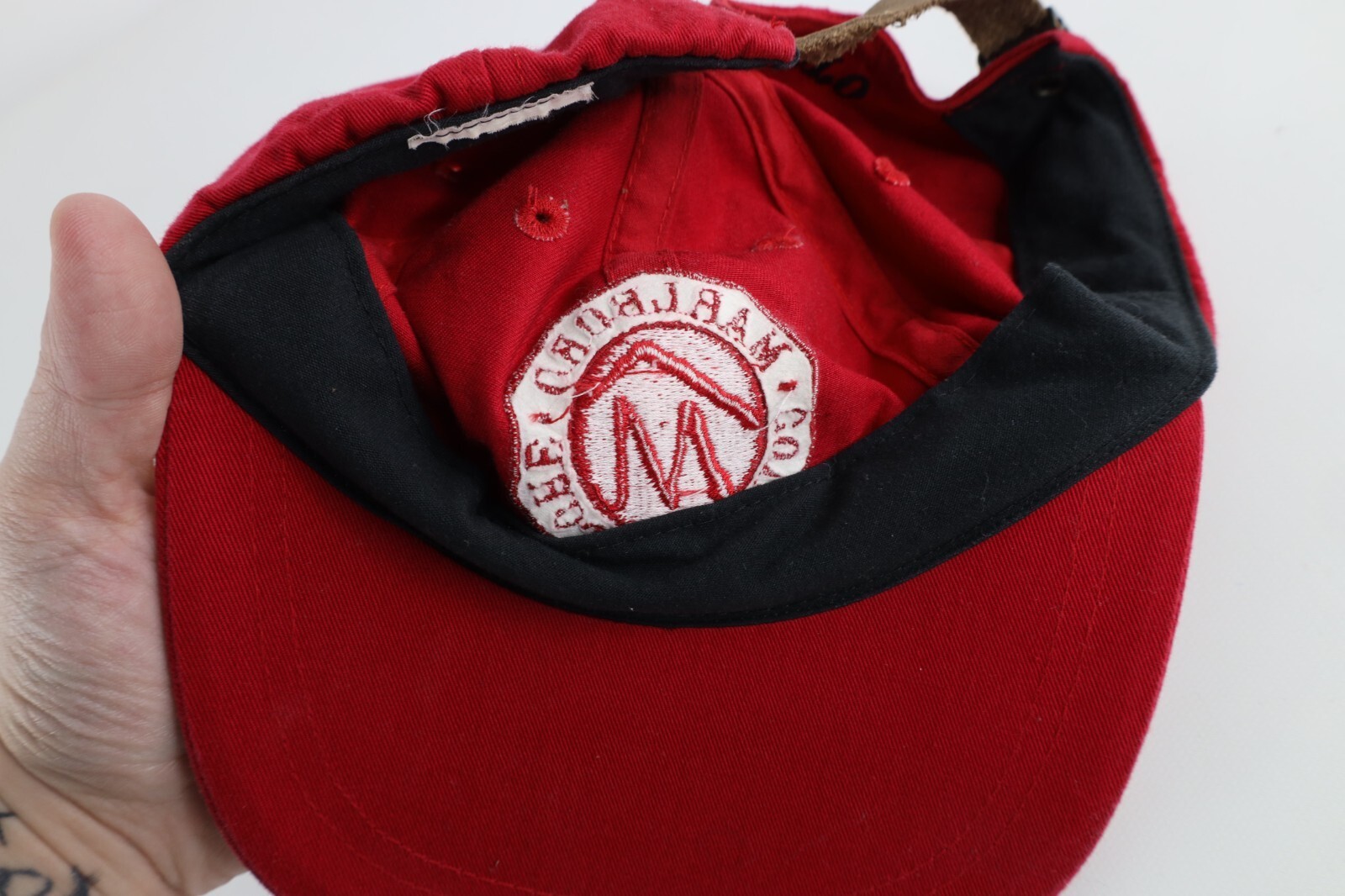 Vintage 90s Marlboro Spell Out Faded Leather Strapback Hat Cap Red Cotton