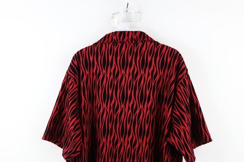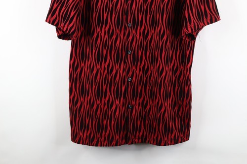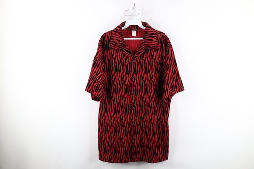 Vintage 90s Streetwear Mens XL Velvet Fire Flames Collared Rave Button Shirt USA