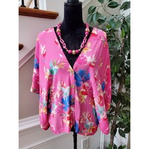 Vici Women Pink 100% Rayon V-Neck 3/4 Sleeve Buttons Front Casual Shirt Size L