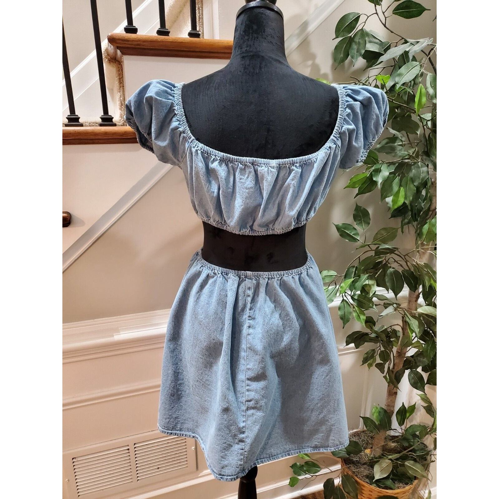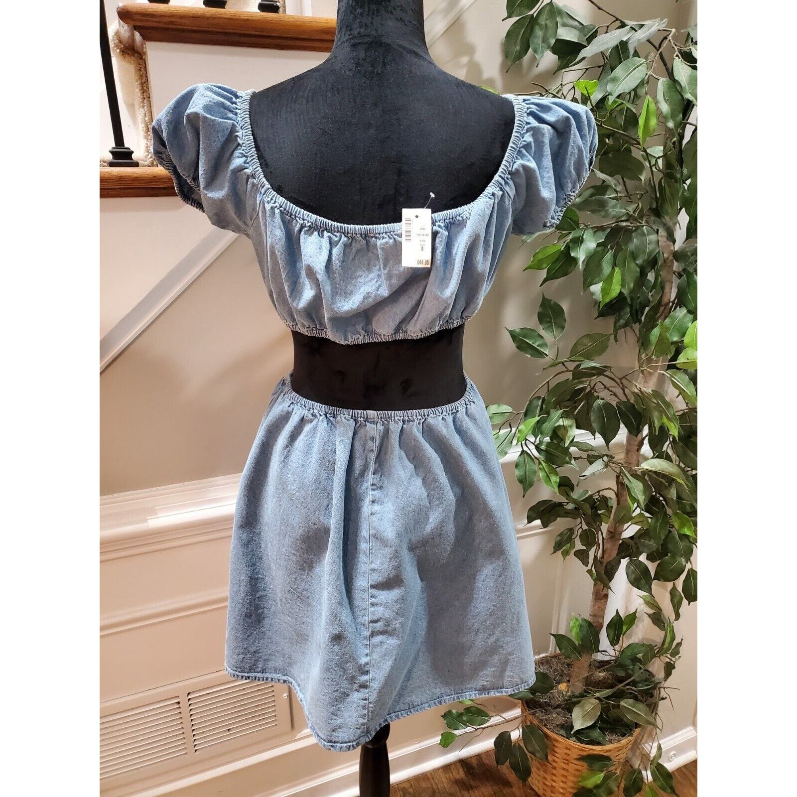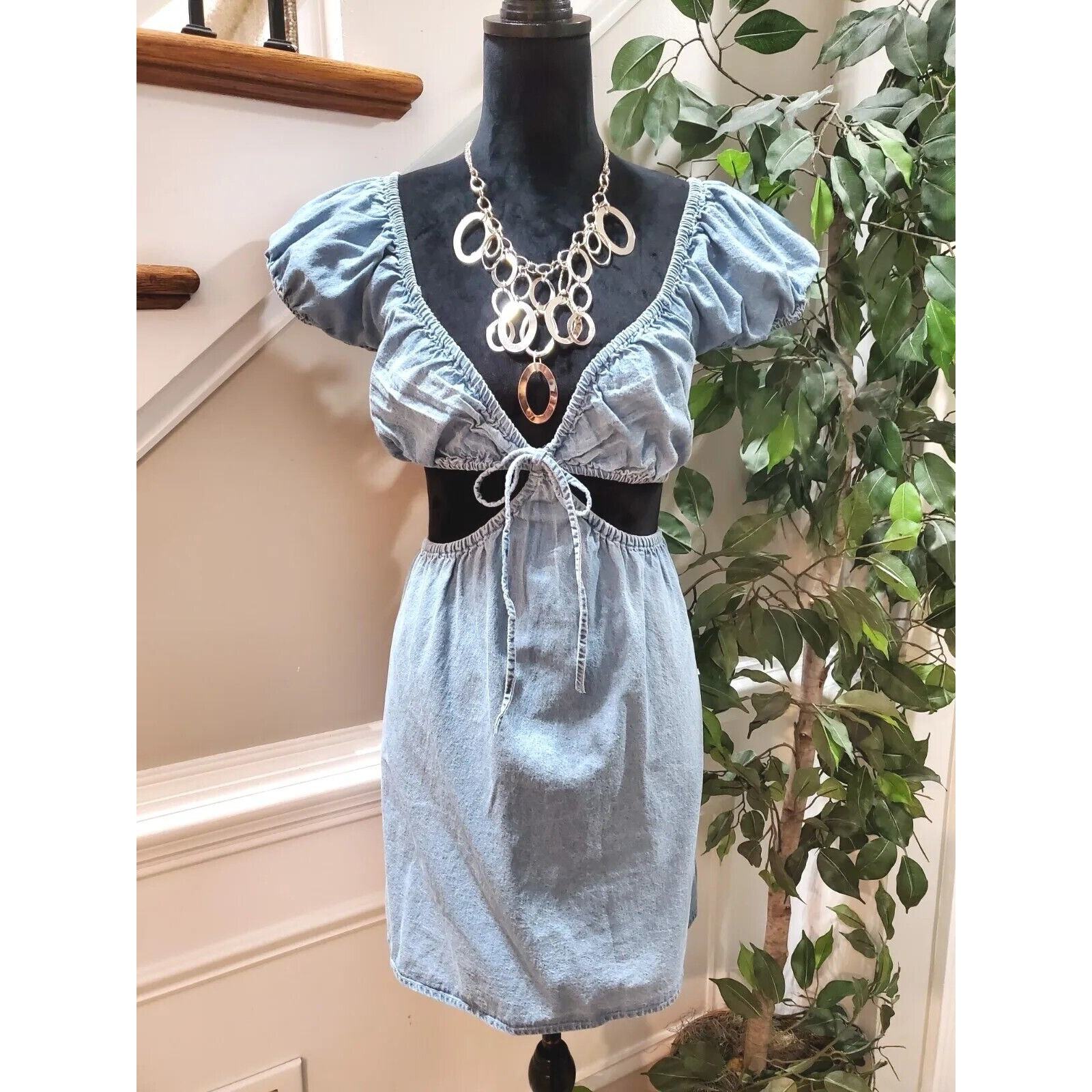 Aeropostale Women's Blue Cotton Sweetheart Neck Short Sleeve Knee Length Dress L