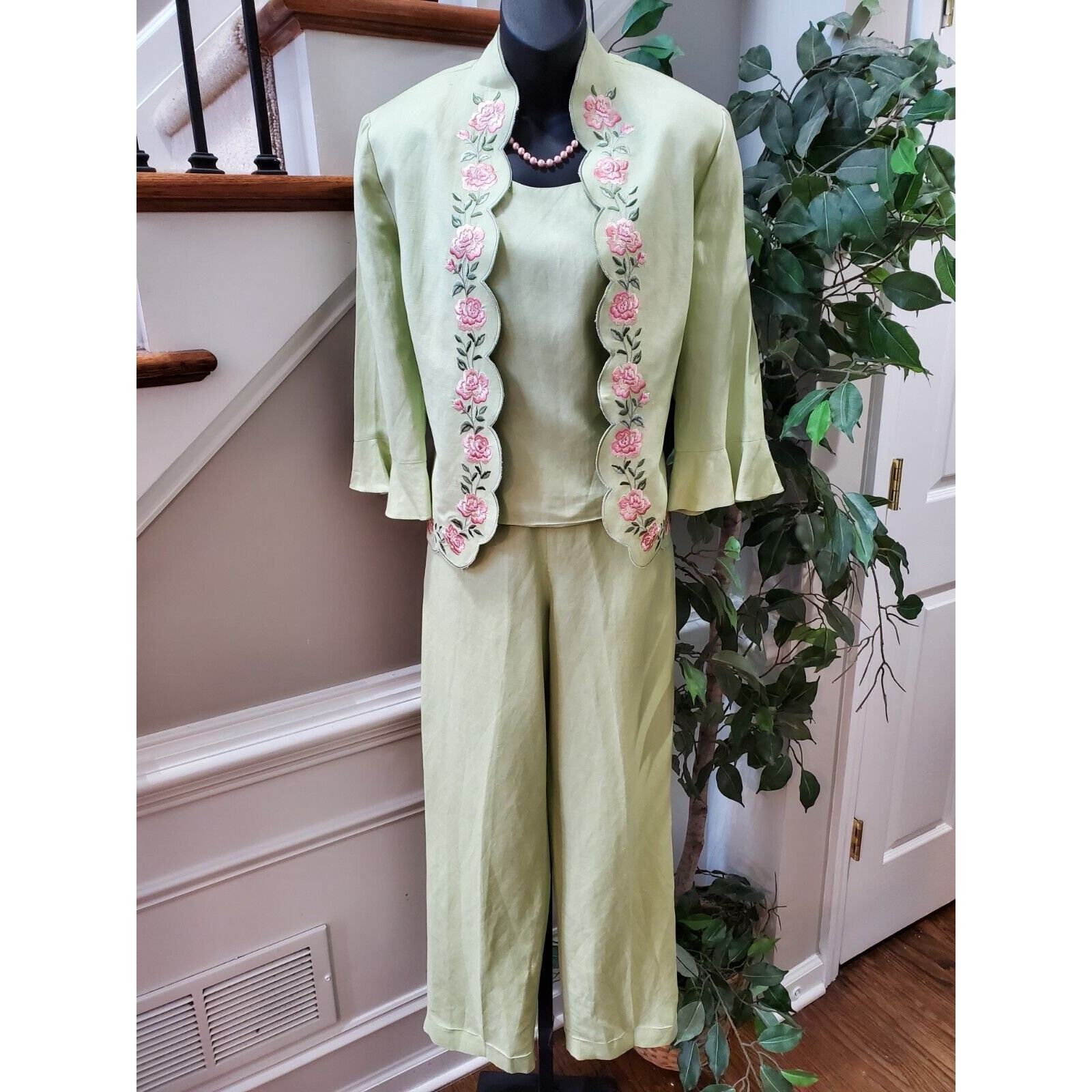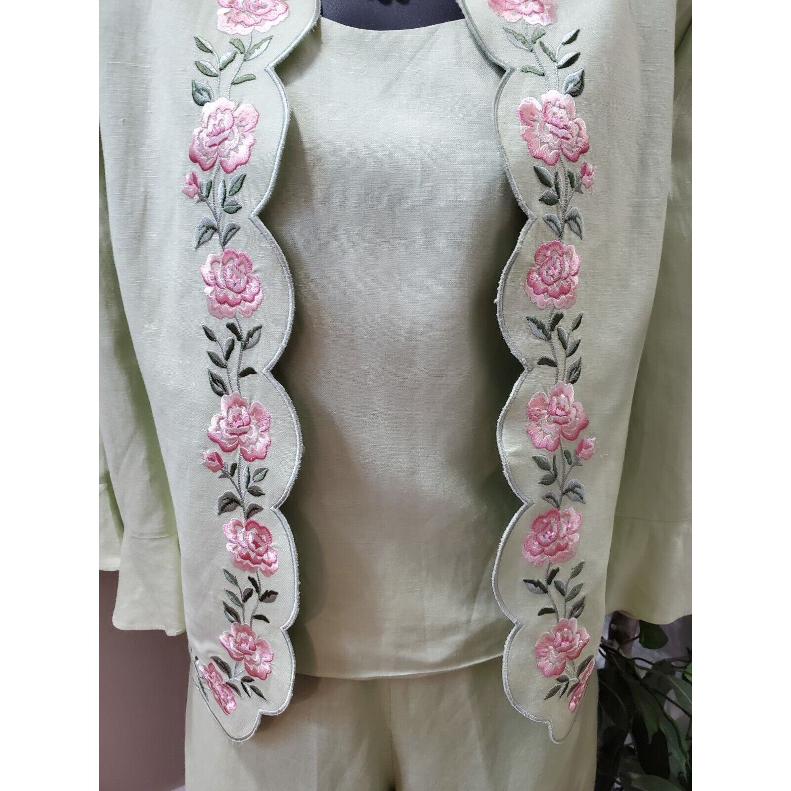 Coldwater Creek Women's Green Single Breasted Blazer, Top & Pant 3 Pcs Suit 8