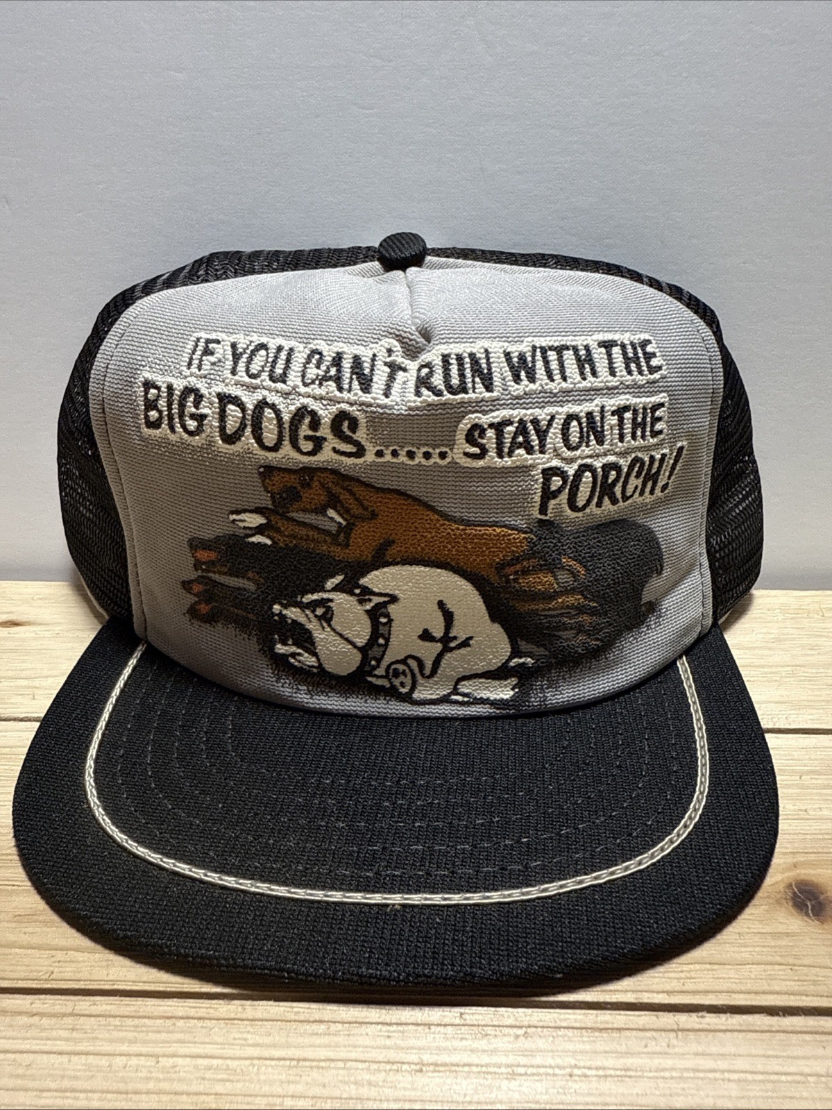 Vintage 1970?s ?Run With The Big Dogs ? Trucker Hat Funny Hat Made In USA Black