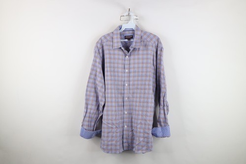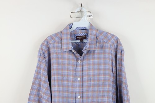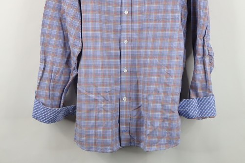 Johnston & Murphy Mens Size XL Houndstooth Plaid Collared Button Shirt Cotton