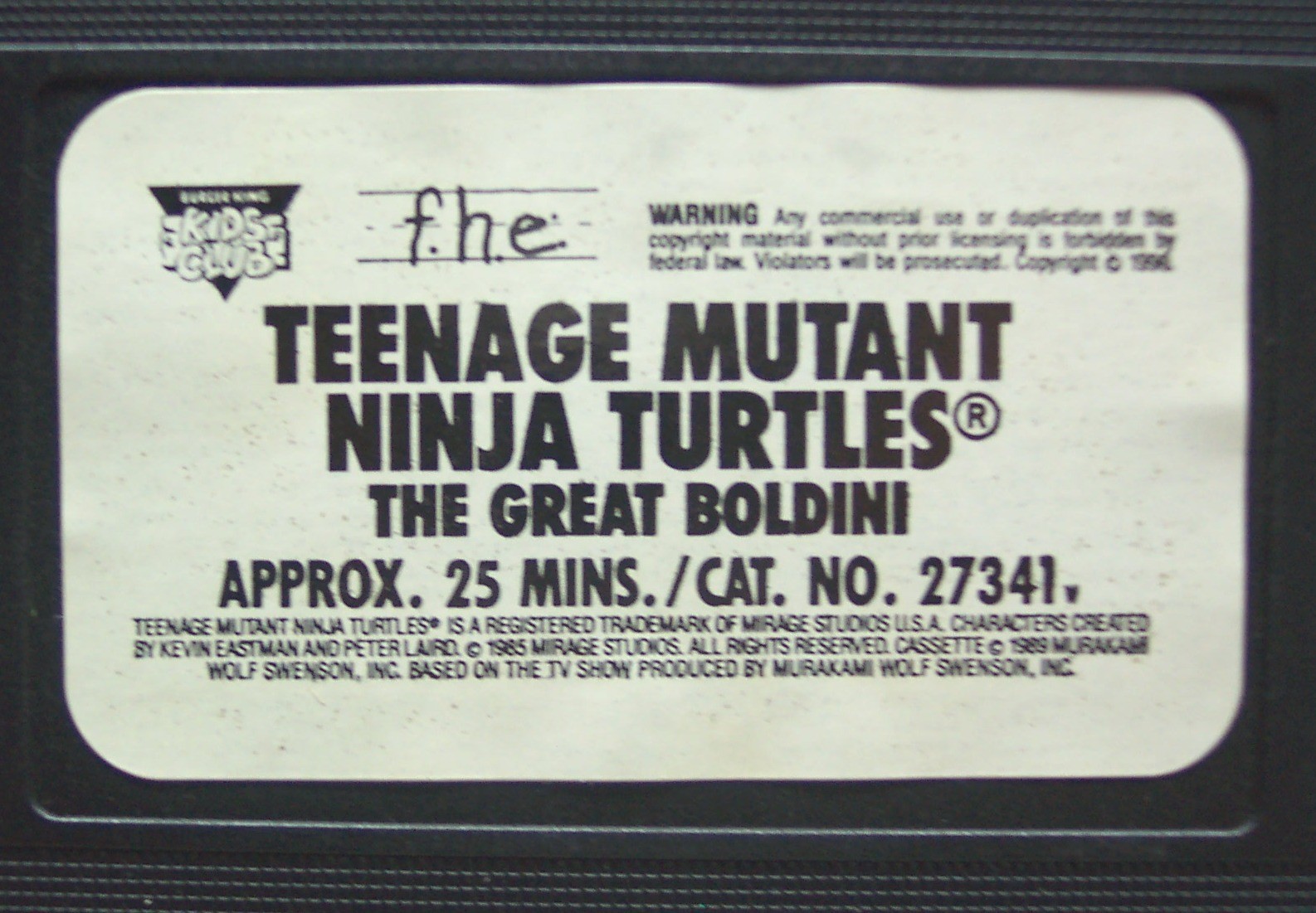 TEENAGE MUTANT NINJA TURTLES April Foolish VHS VIDEO Cartoon 1990 Burger King