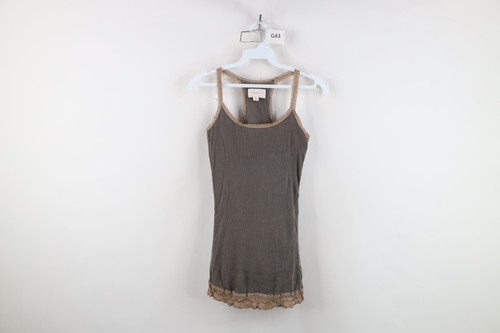 Vtg 90s Y2K Abercrombie & Fitch Womens M Babydoll Ribbed Lace Tank Top T-Shirt