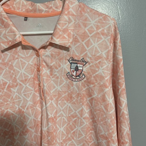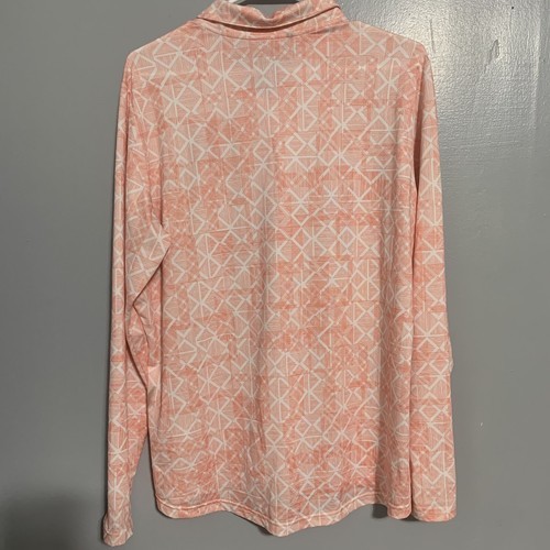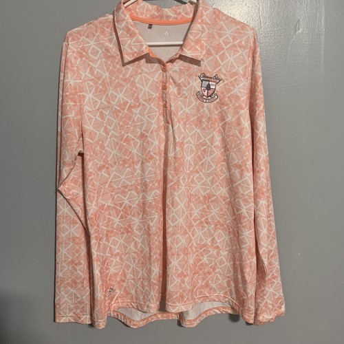 Adidas Golf Salmon White Geometric UPF 50 Long Sleeve Polo Shirt EUC XL