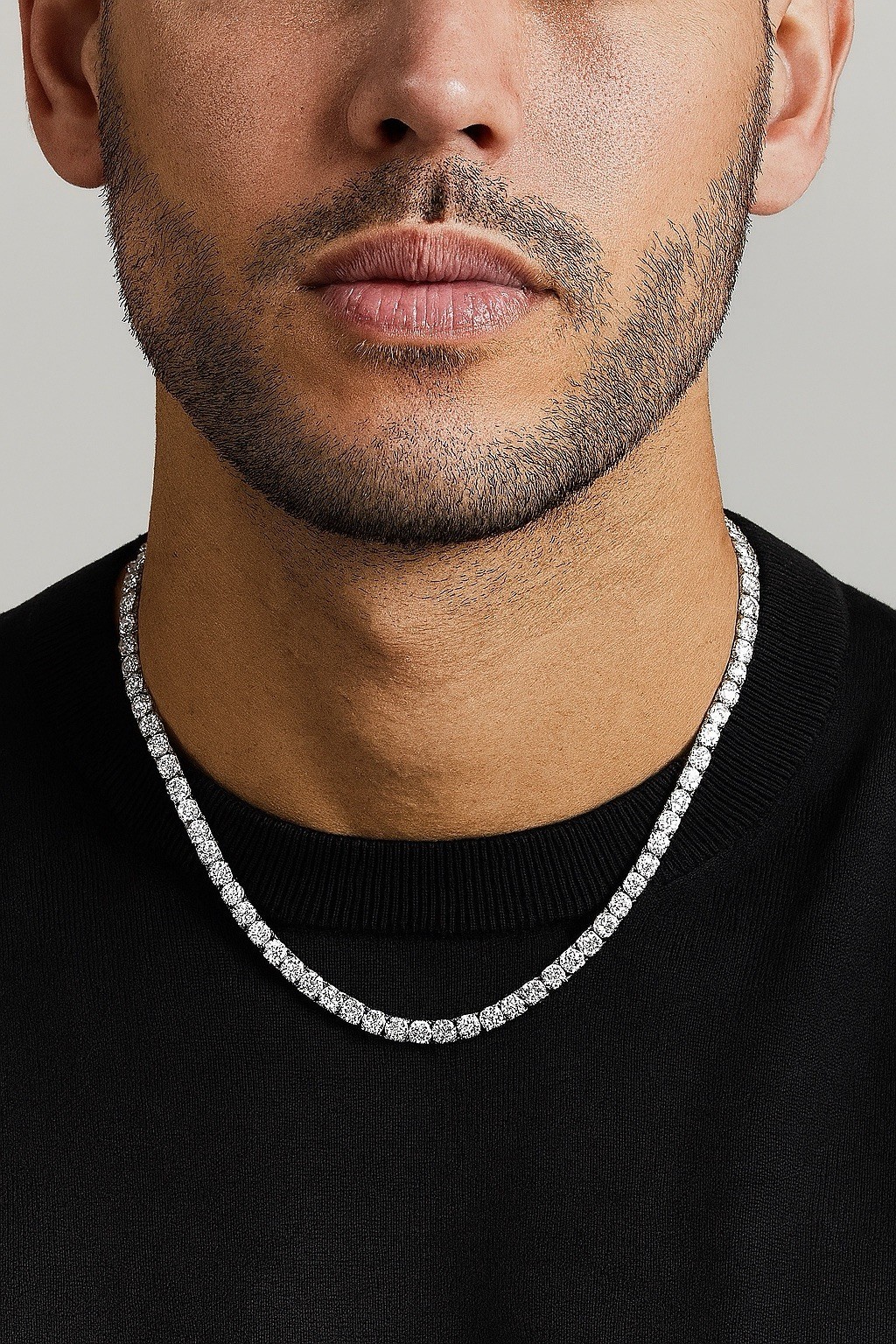 22 Inch Tennis Necklace 18K White Gold Plated4.0mm Round Cubic Zirconia