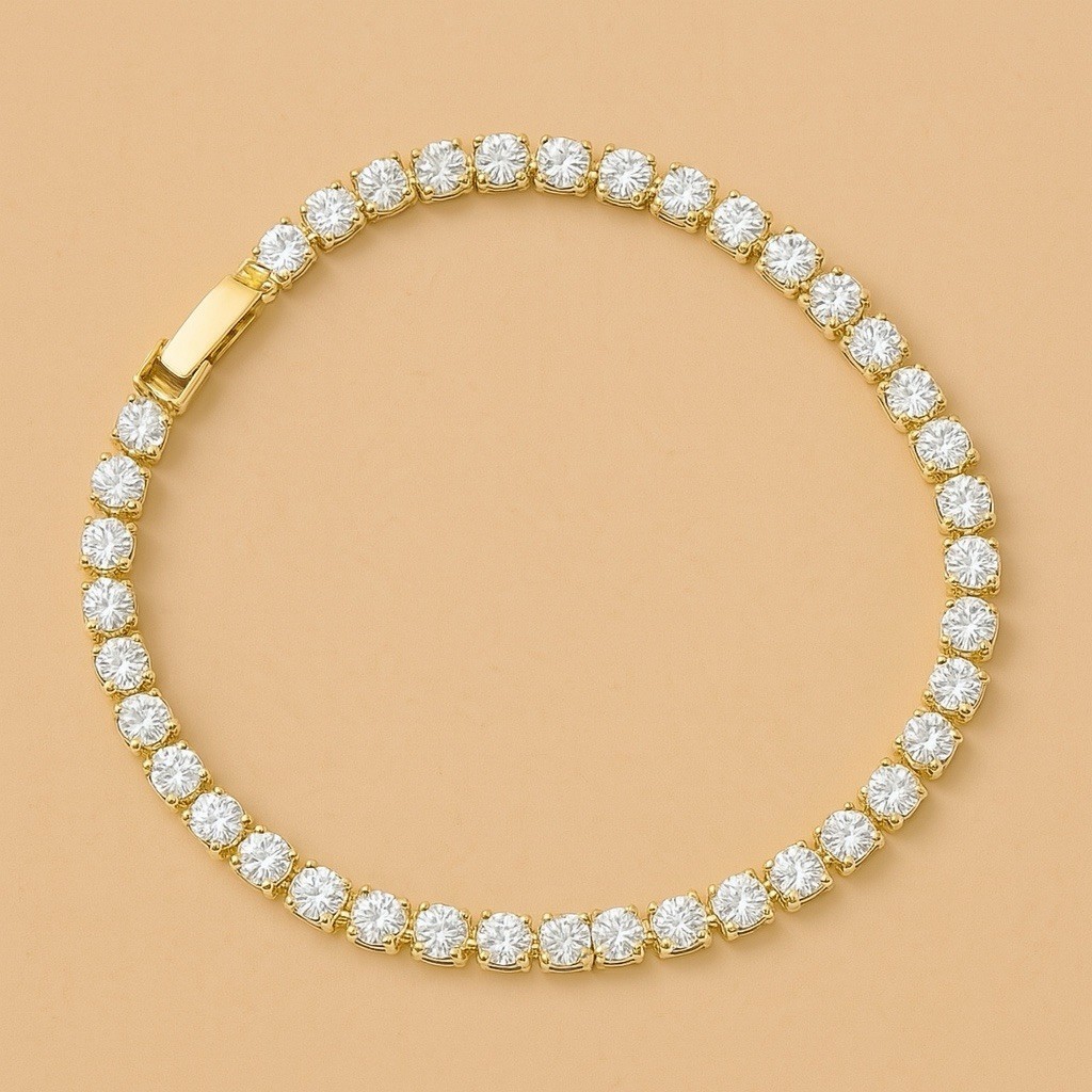 7 Inch Tennis Bracelet 18K Gold Plated 4.0mm Round Cubic Zirconia
