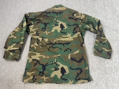 Vintage US Military Woodland Camo Hot Weather Combat Coat Top Small-Short 1980