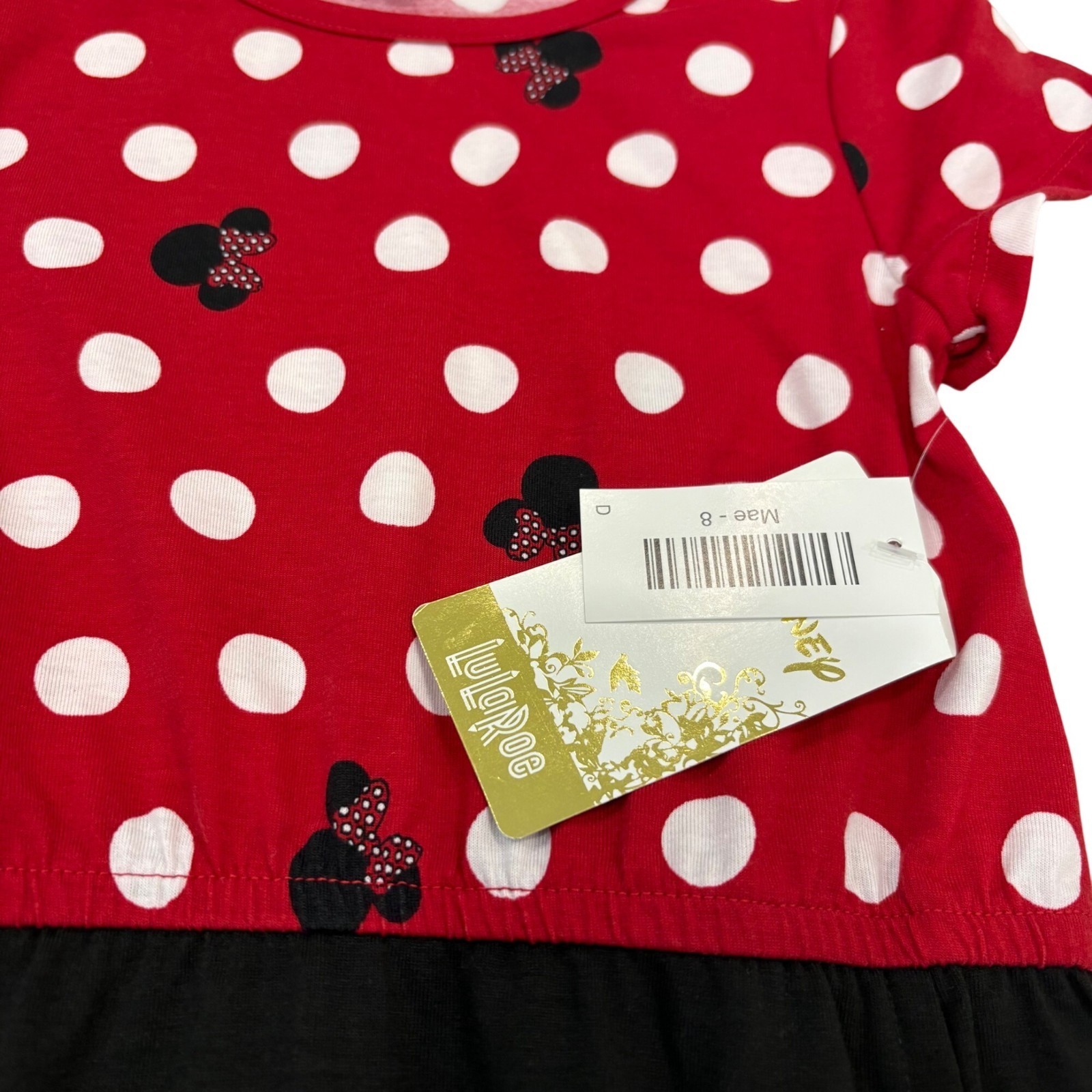 LulaRoe Mae Girls Minnie Mouse Polka Dot & Black Dress Size 8 NWT