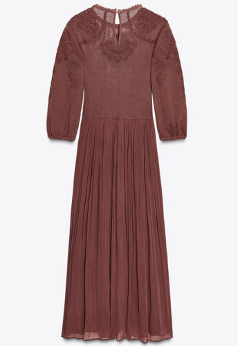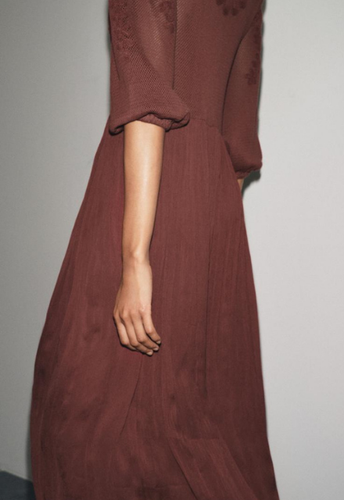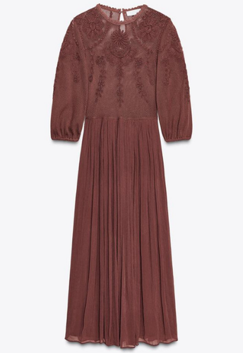 ZARA BNWT 2025. MAROON PINK EMBROIDERED COMBINED DRESS VISCOSE . 6895/283/791