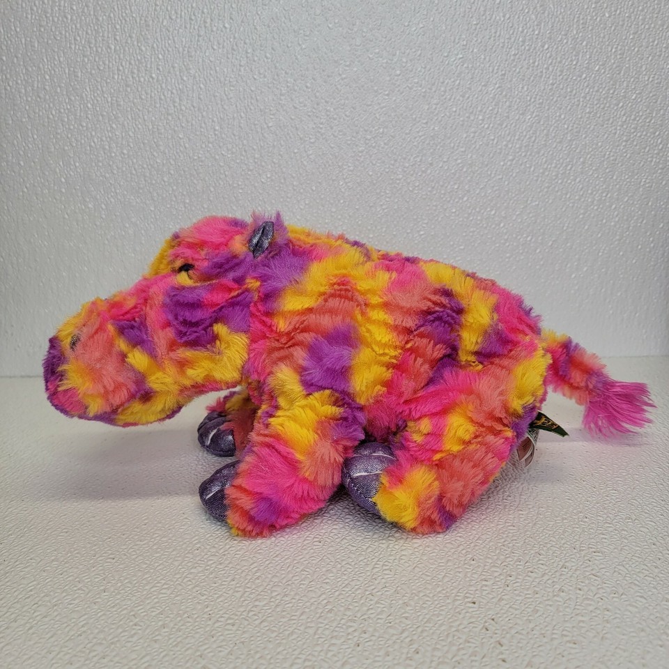 Rare Wild Republic Neon Rainbow Sparkle Hippo Plush Purple Pink Yellow Tie Dye