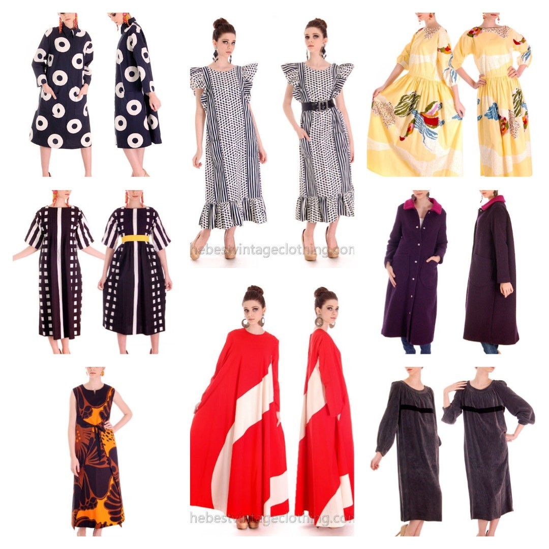 I have decided to sell my huge collection of vintage Vuokko and Marimekko dresses. App 150 ( at this writing) dresses, coats, and skirts. All are dry cleaned, and in excellent condition, and I have all the model photos and descriptions ( the 60 or so I have online, the rest haven't made it yet)that you can use to sell online too. It is the most extensive collection I know of. It is a steal for what they are. You can see many of them on this website by searching Vuokko/Marimekko. Included all model photos descriptions for selling online.(Some in photos are already sold, but this is a representative photo lot)