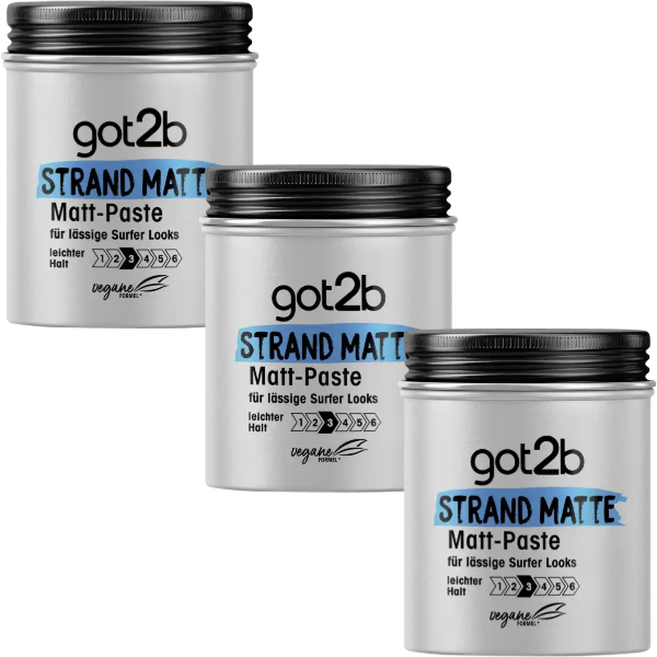 GOT2B Beach Matte Matt Paste - for casual surfer looks with light hold. Life is better at the beach! GOT2B Beach Matte creates casual surfer looks with light hold. Whether you want a tousled or sleek look - the main thing is that it's matte! The formula is vegan.*