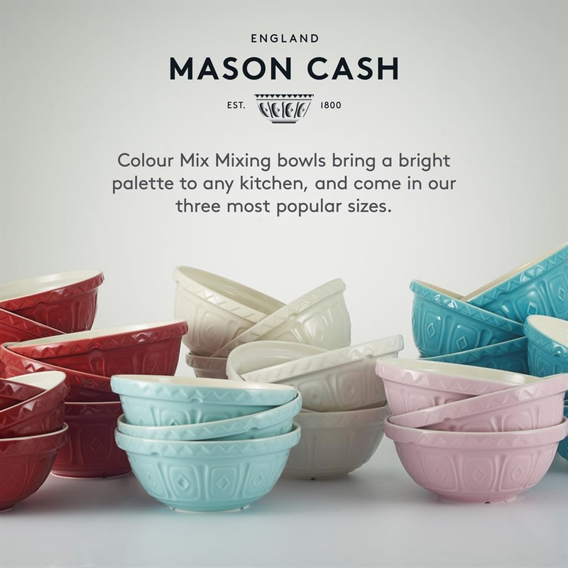 COLOUR MIX | Colour Mix Mixing bowls come in our most popular sizes and retain the charm of Mason Cash classics. The choice of bright or pastel shades allows you to mix or match bringing a bright and vibrant palette to any kitchen. All bowls are made from high-grade earthenware.