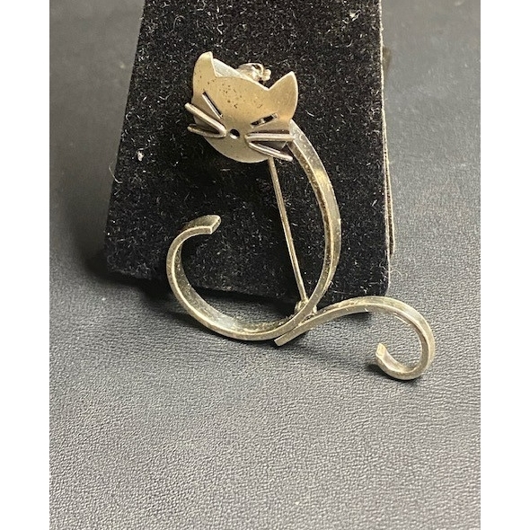 BEAU 925 STERLING SILVER SILHOUETTE CAT BROOCH SKY