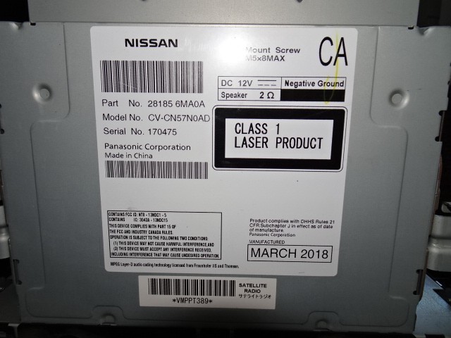 Nissan OEM Radio/CD Head Unit – Panasonic CV-CN57N0AD (28185-6MA0A) Fits Rogue