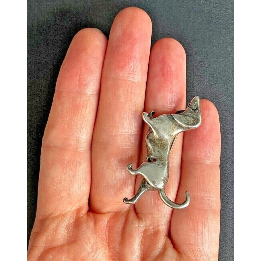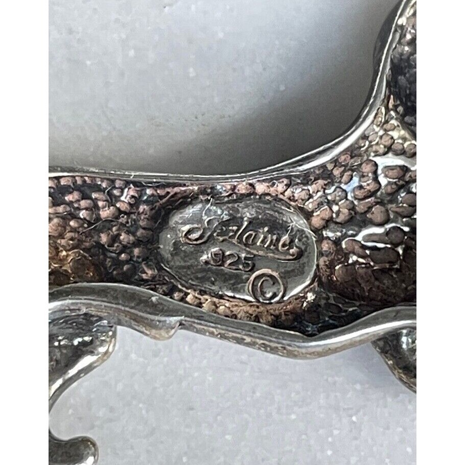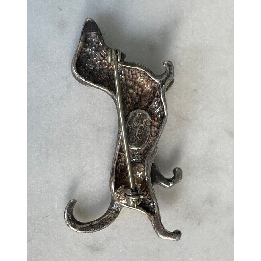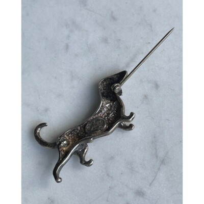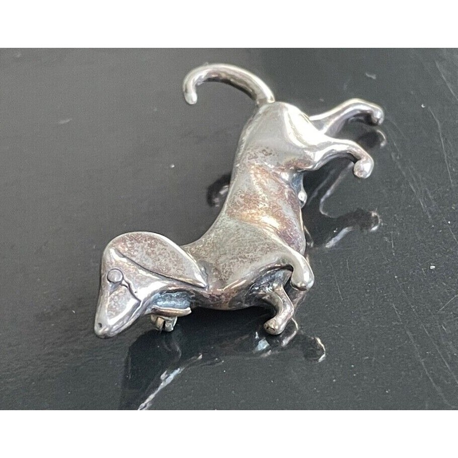 JOLAINE SOLID WROUGHT 925 STERLING SILVER DACHSHUND DOG BROOCH SKY