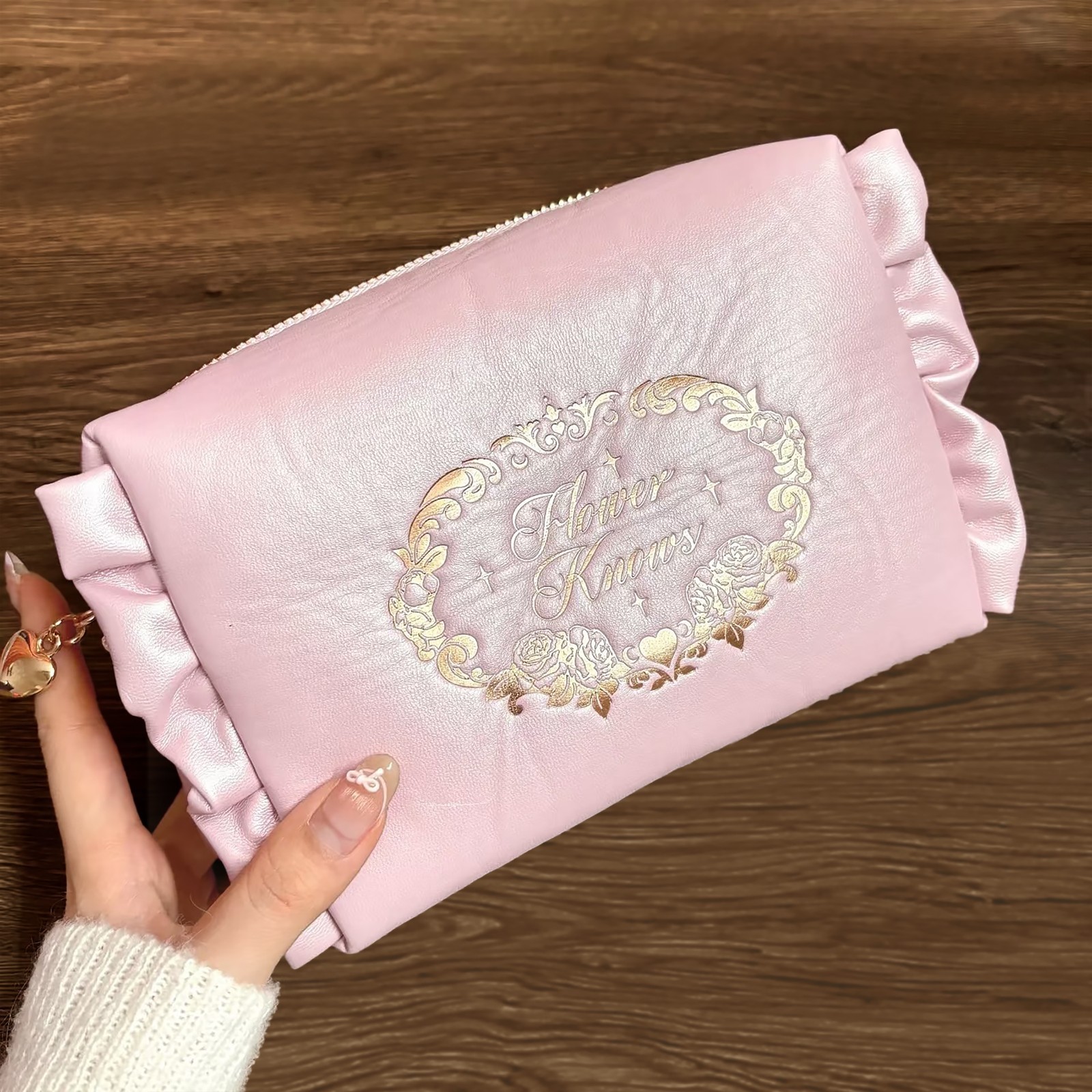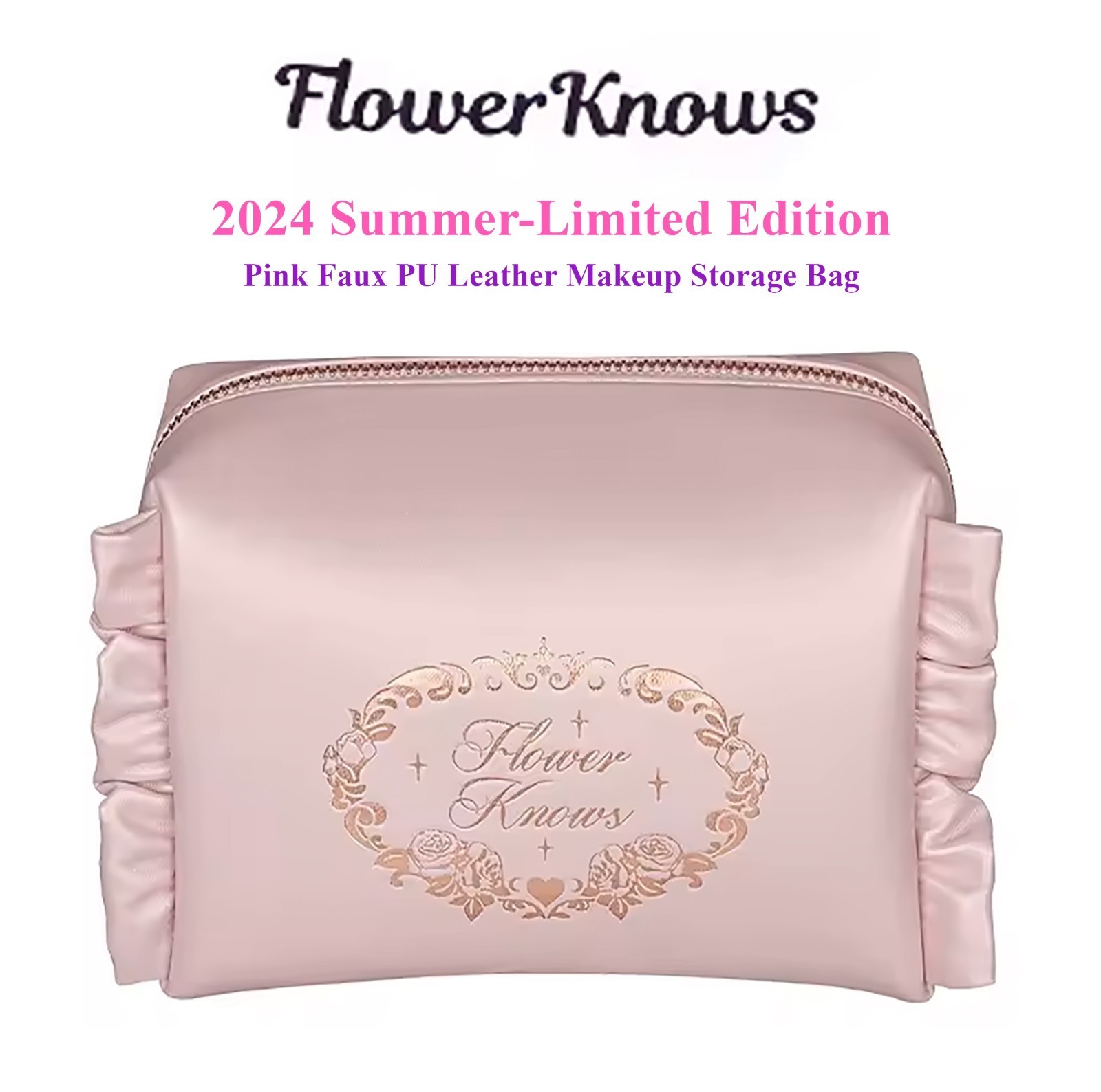 Flower Knows 2024 Summer-Limited Edition Pink Faux PU Leather Makeup Storage Bag