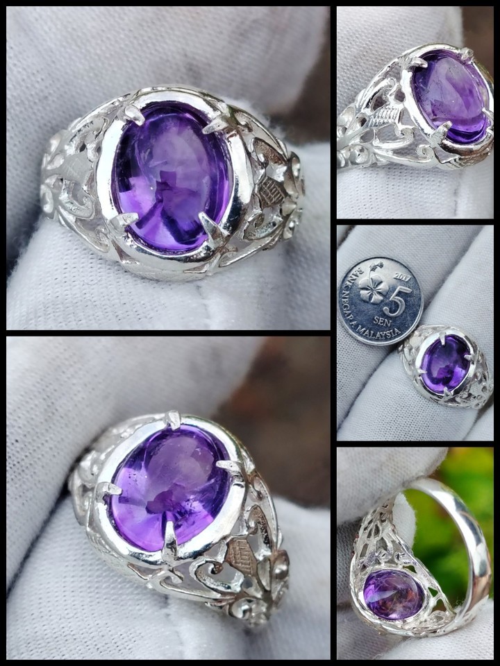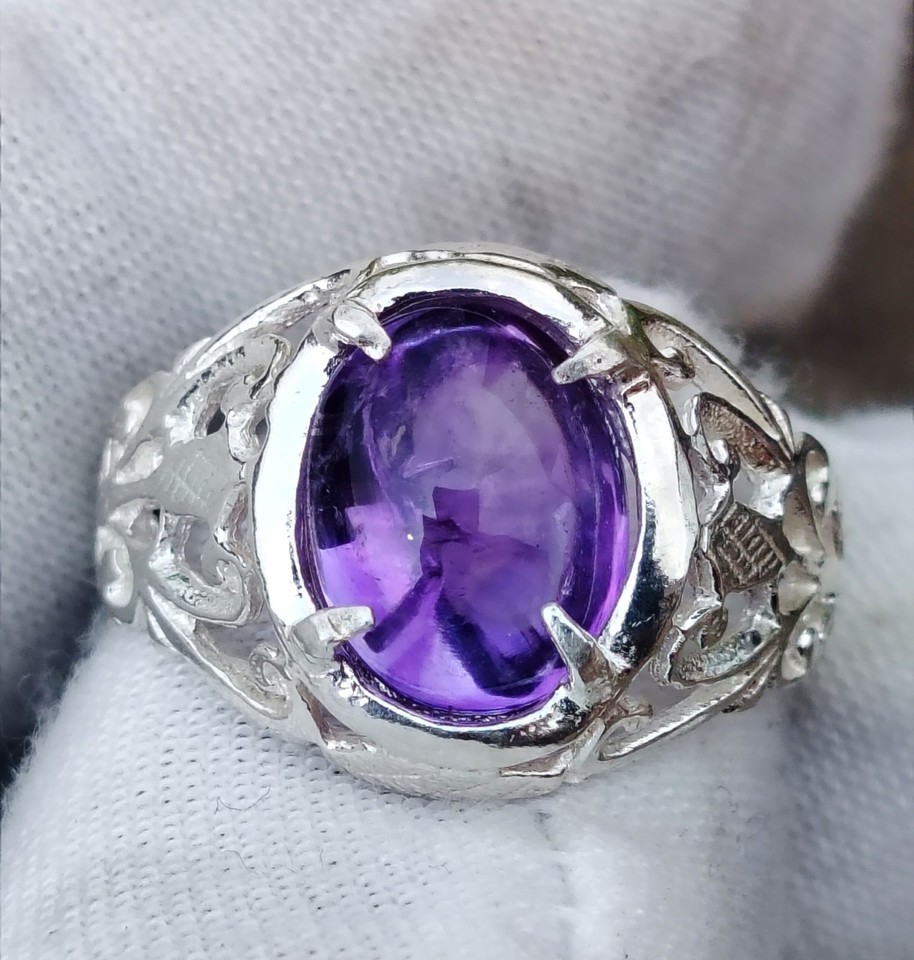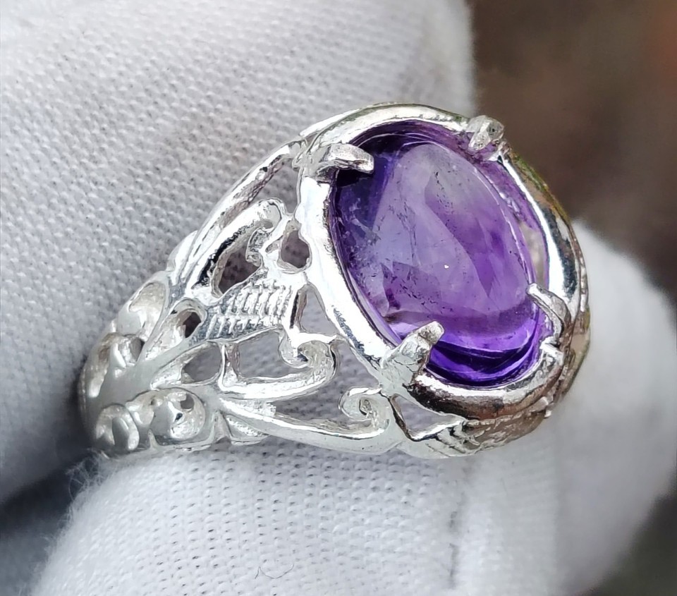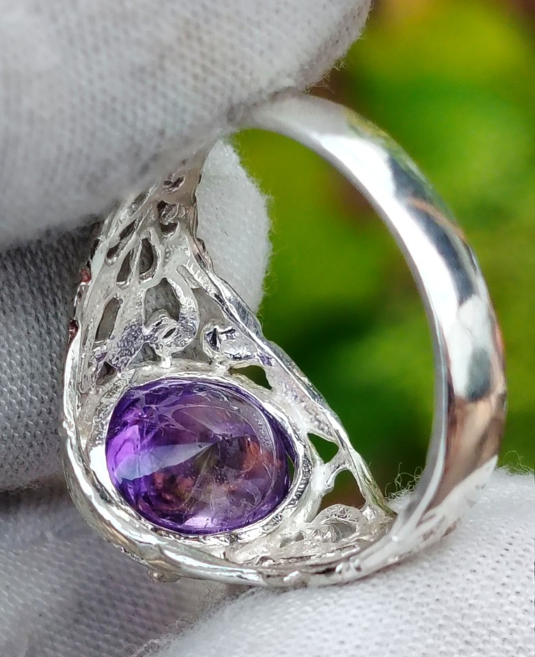 Natural Untreated Amethyst Jeli 4 Carat Silver Filigree Ring
