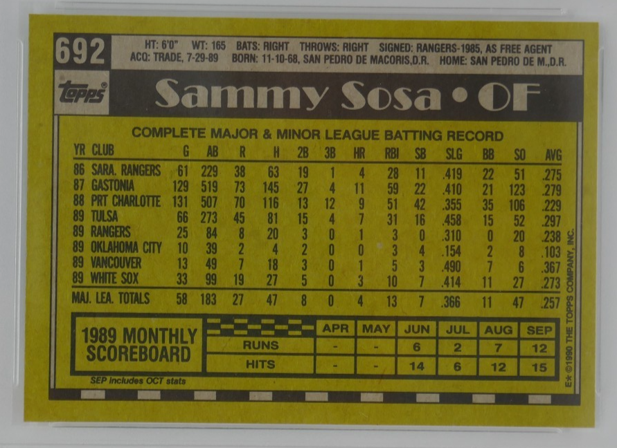 1990 Topps #692 Sammy Sosa Rookie RC Chicago and 50 similar items