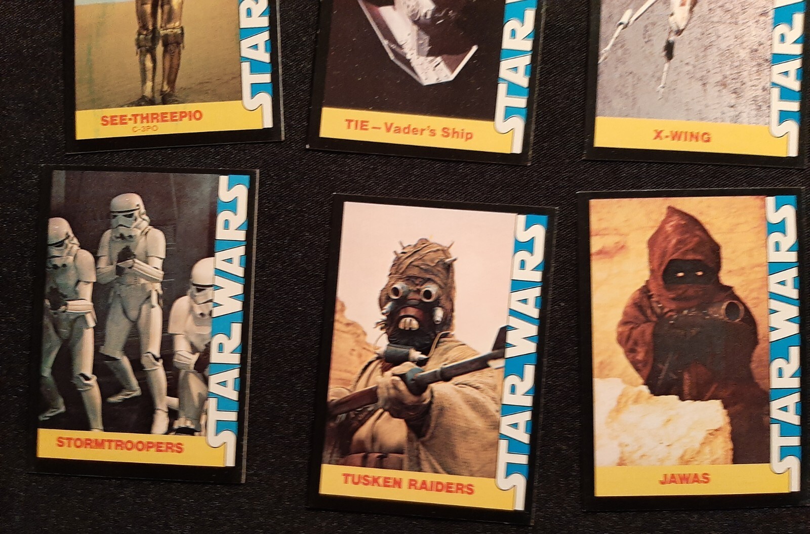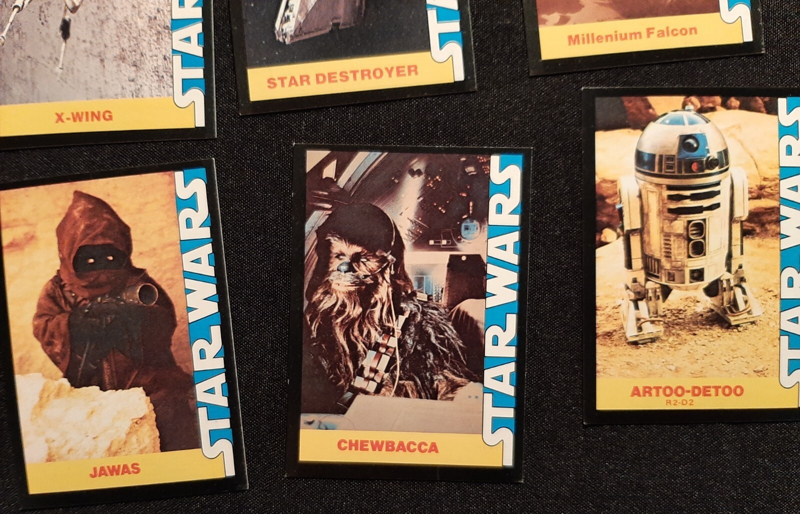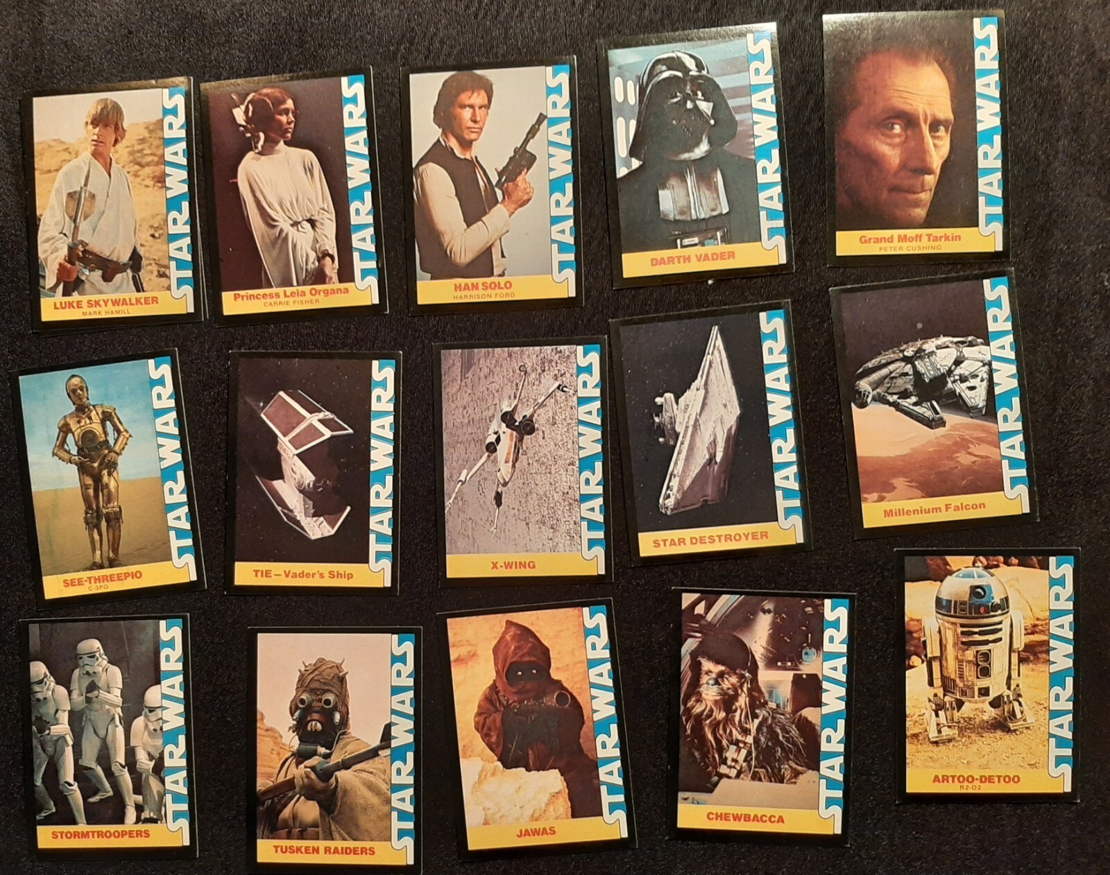 STAR WARS: RARE 1977 WONDER BREAD TRADE CARD SET. THESE CARDS ARE VERY SHARP, NEAR MINT TO MINT (16 CARD SET) THAT BEING SAID I SEEN HIGH GRADED CGC CARDS GOING UP IN VALUE LIKE CRAZY, IM SURE IF YOU WANT TO SLAB THEM CGC, YOU CAN, BUT IM SELLING THE WHOLE SET AS IS.