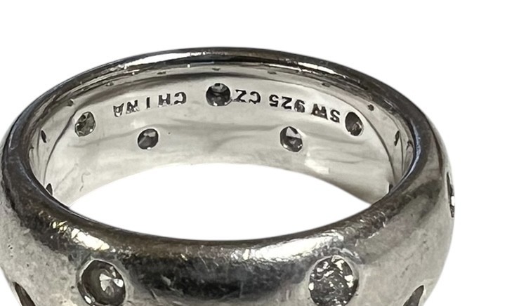 Type: Cluster ringWeight: 5.2Karat: .925Metal: SilverGender: UnisexStyle: BandSize / Length: 7Owner applied: SW 925 CZ CHINAStone 1 quantity: 15Stone 1 shape: RoundStone 1 color: ClearStone 1 weight (total): .30Stone 1 type: Cubic ZirconiaCondition:Used