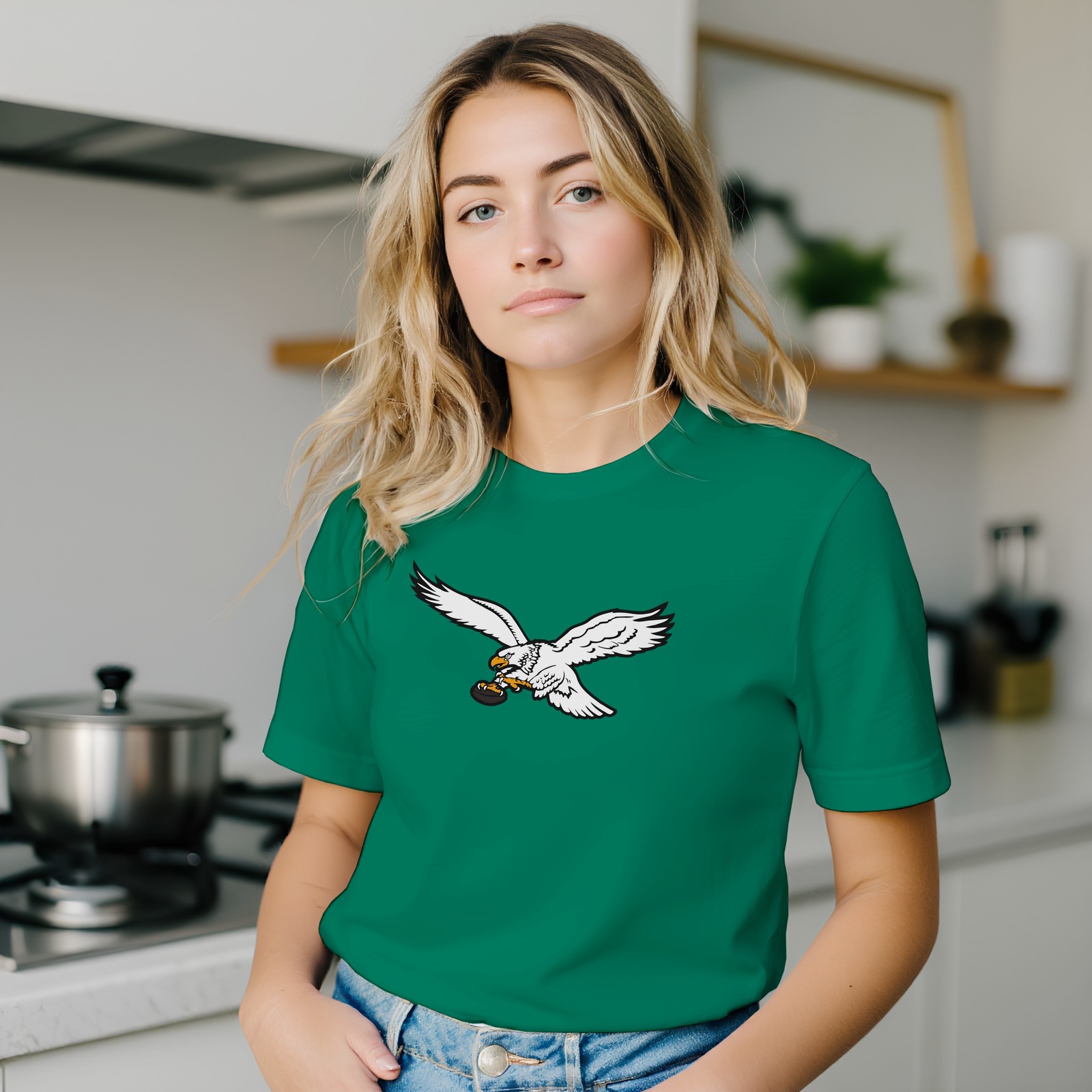 Womens Retro Eagles Logo T-Shirt tee shirt tshirt for Philadelphia - Kelly Green