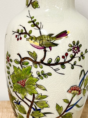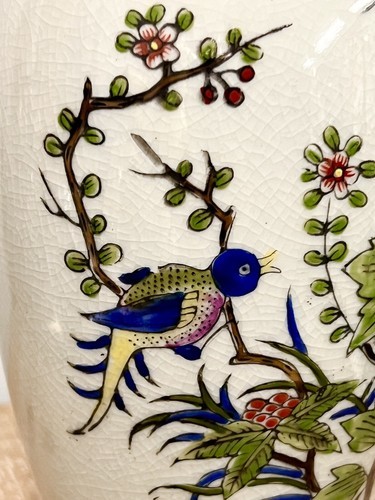 Vtg Asian Vase Color Blue Birds Cherry and similar items