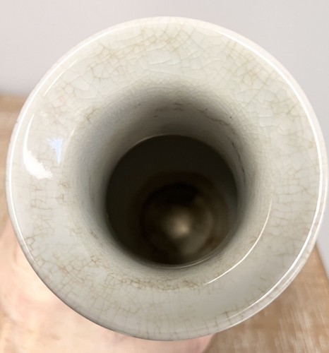 It has a little bit of craziness, but it?s not terrible. There is some discoloration inside the jar. No cracks or chips. Other items in the photo are for staging purposes only. It?s a beautiful vase and there painting on. It is beautiful as well. It has cobalt blue green and red colors in it.