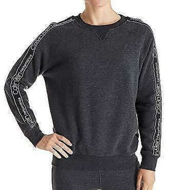 Calvin Klein Womens Performance Logo-Sleeve Fleece Sweatshirt, Size Medium