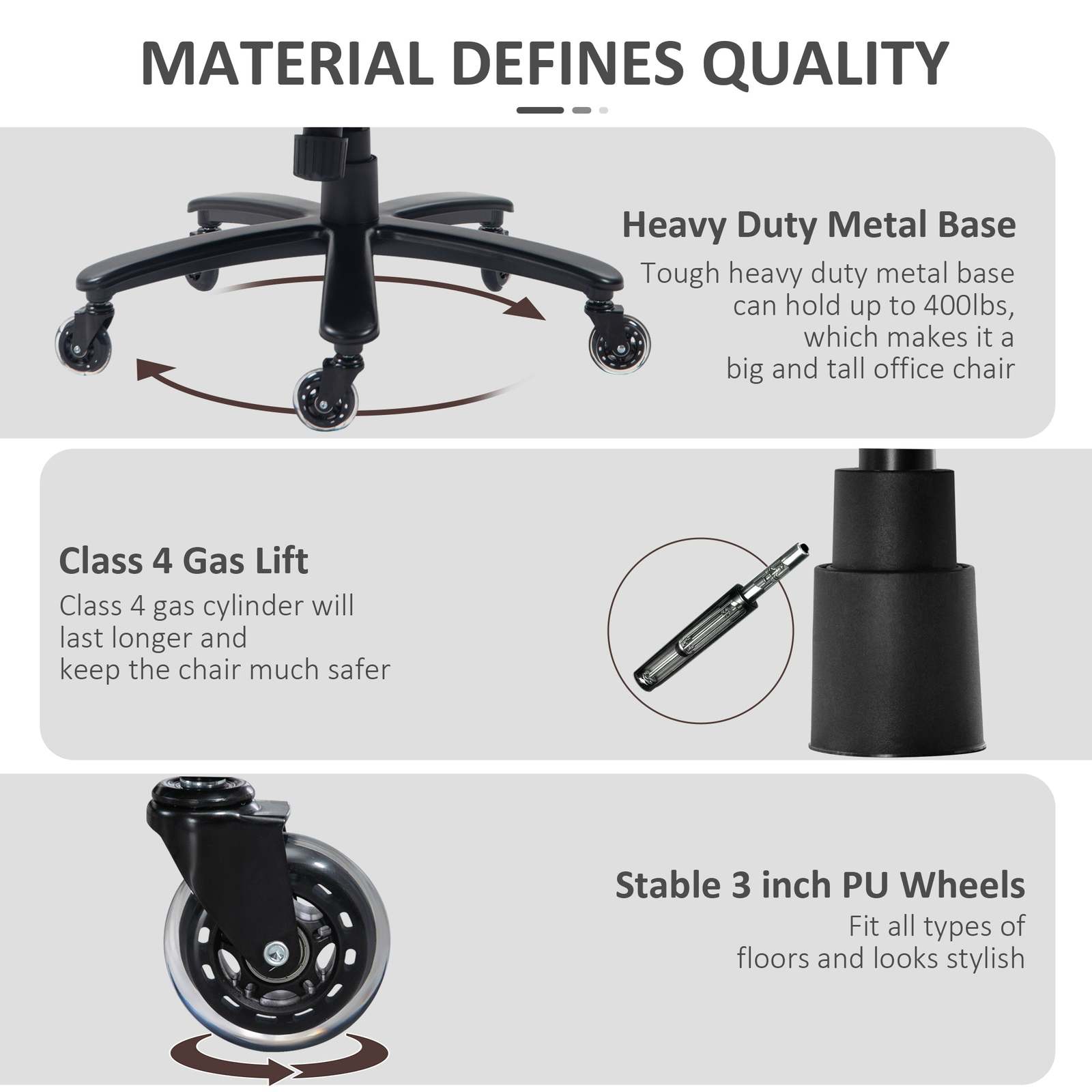 Vinsetto Big and Tall Office Chair, PU Leather Desk Chair 400lb, Black