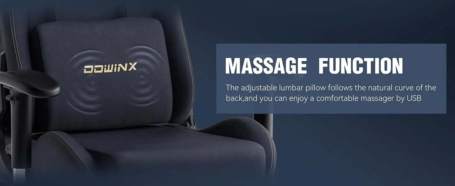 Experience unmatched comfort and style with the Dowinx Gaming Chair with Massage Lumbar Support. This premium ergonomic chair, designed for adults, features luxurious suede fabric that elevates your gaming or work environment. With its innovative massage lumbar support, you can enjoy ultimate relaxation while tackling your tasks or immersing yourself in your favorite games.